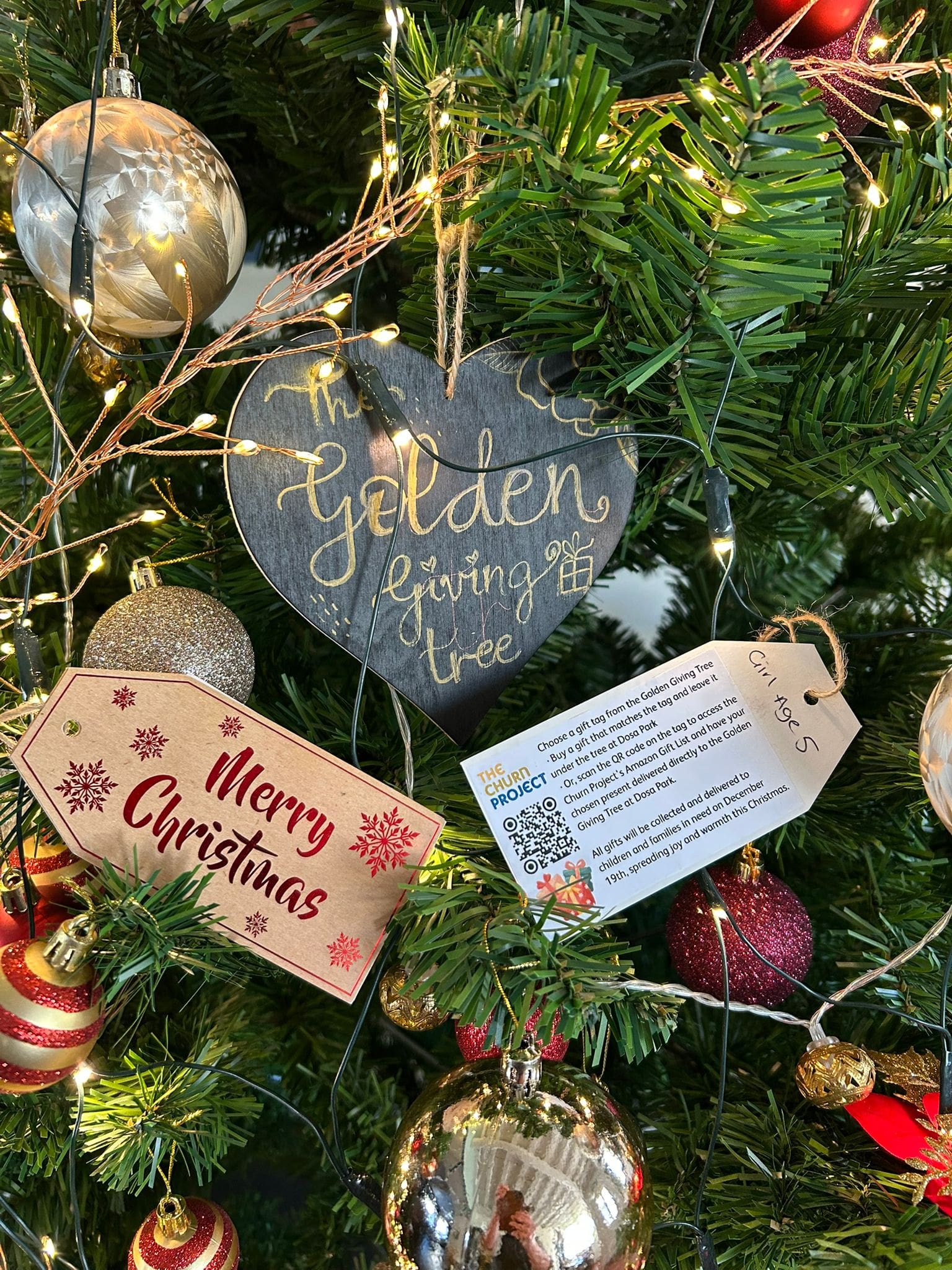 - Alternatively, scan the QR code on the tag to access the Churn Project’s Amazon Gift List and have your chosen present delivered directly to the Golden Giving Tree at Dosa Park, 29 Sheep Street, Cirencester, GL7 1QW